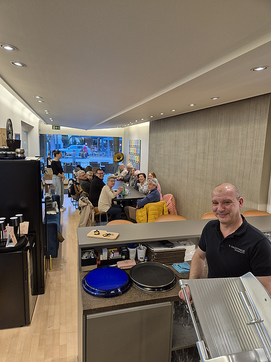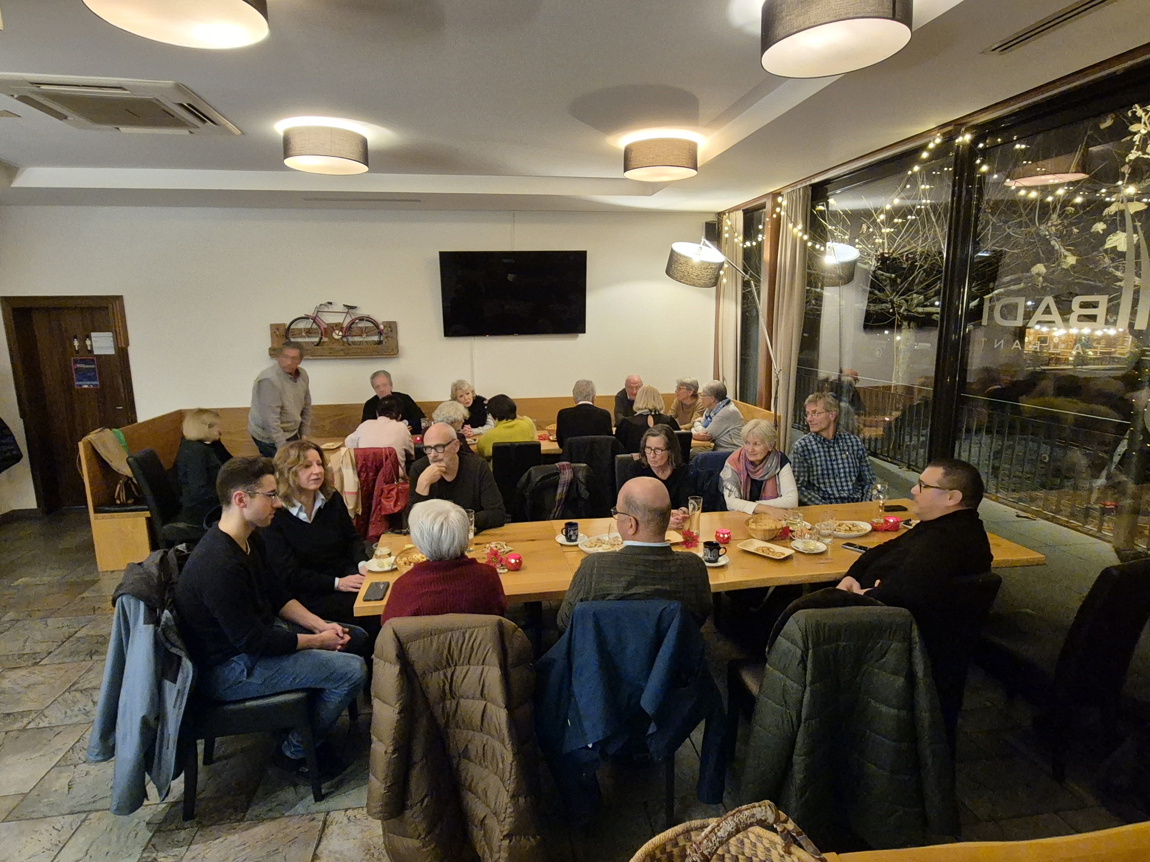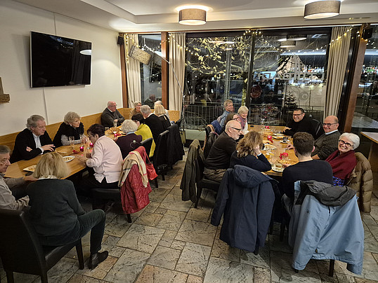 Am 11.12.2025 fand unser für diese Jahr letzter Quartier Stamm im Restaurant Alti Badi statt. Es war eigentlich ein Chlaus Stamm, wobei der Chlaus die Dekoration und die Mandarinli vergessen hatte, wobei er Nüssli und Guezli umgehend auf die Tische stellte. Zum Glück ergriff unser langjähriges Vereinsmitglied Gertrud sofort die Initiative und brachte kurzerhand Kerzen, Tischschmuck, noch mehr Guezli und einige Mandarinli. Der vergessliche Samichlaus gab dann allen Besucherinnen und Besuchern noch einen Panettone auf den Heimweg mit und der Fotograf machte zum Glück doch noch 3 Fotos, obwohl schon einige gegangen waren, aber er war tief in ein angeregtes Gespräch eingetaucht.