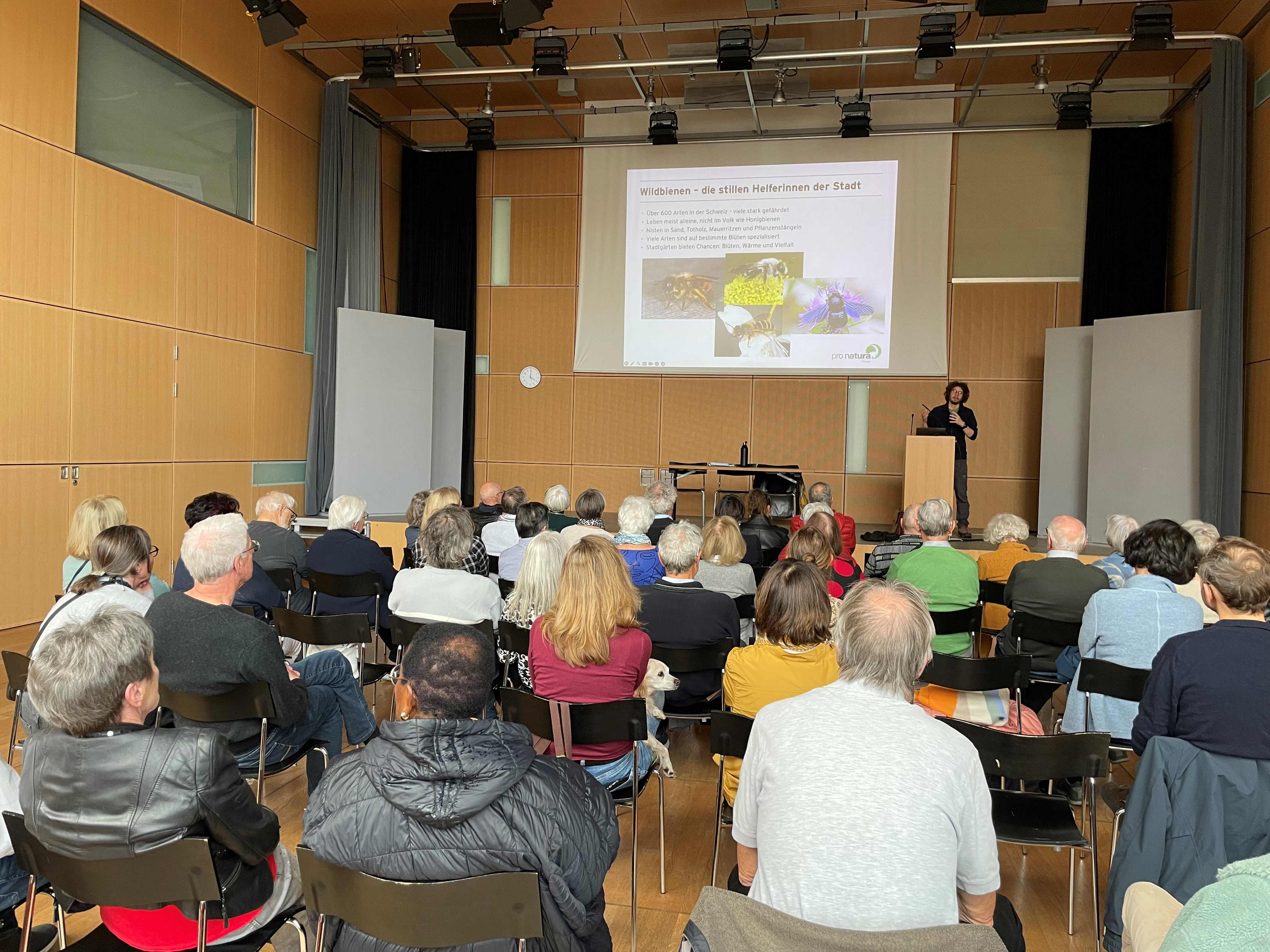Am 25. Oktober 2025 fand unser Herbstanlass zum Thema "Tiere im Quartier" statt. Zahlreiche Mitglieder unseres Vereines trafen sich in der Aula der Kantonsschule. Die Beobachtungen seitens der Vereinsmitglieder lagen zur Betrachtung auf. Ein Fachreferat von Herrn Tim Schoch von pro natura eröffnete den Anlass und es war schon sehr beeindruckend zu hören, wie viel mannigfaltigen Lebensraum für Wildtiere die Stadt bietet und wie sich die Wildtierpopulationen dem städtischen Habitat anpassen.